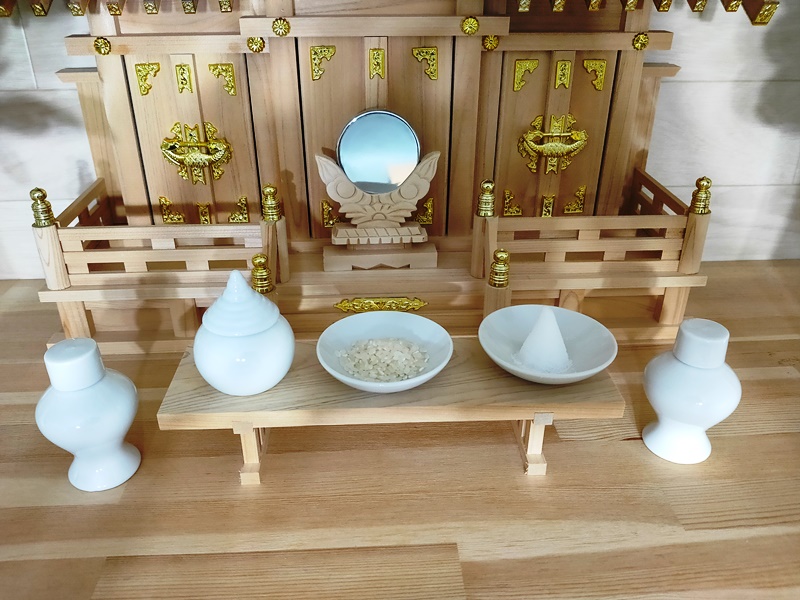 神棚のお供え物の飾り方。お供え物の水・米・塩、置く位置や順番について│かみさまとおうちブログ神社と神棚のお話し Kamisama To OuchiBLOG。