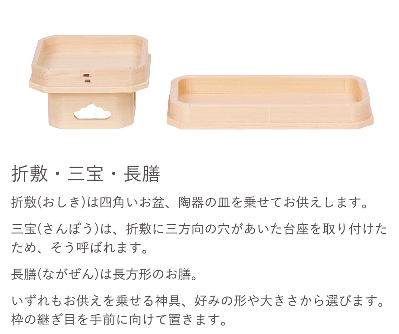 神具 三方 さんぽう 檜 お供え 供物 国産 神棚 神社 「遠山三宝 木曽ひのき 4.5寸」 お仏壇のはせがわ お仏壇のはせがわ 神具 三方 さんぽう檜 お供え 供物 国産 おしき おりしき 神棚 神社 「長折敷 木曽ひのき 5.0寸」 : 仏壇・位牌・線香- お仏壇のはせがわ。