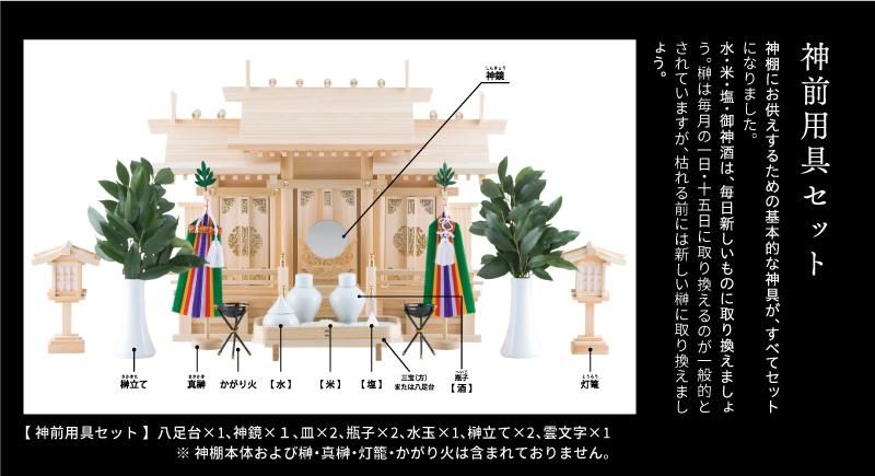 お宮セット置ける神棚 お宮 & 神具5点セット伊勢神宮のヒノキモダン神棚や神具の販売・通販のかみさまとおうちでおしゃれな神棚を探そう。Kamisama To Ouchi。