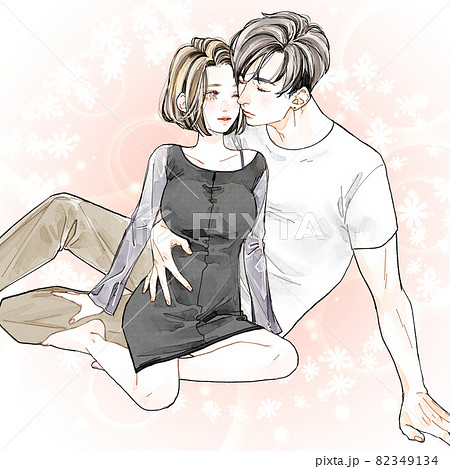 下着で抱き合ってキスをしようとする男女のカップルのイラスト素材81488857- PIXTA。