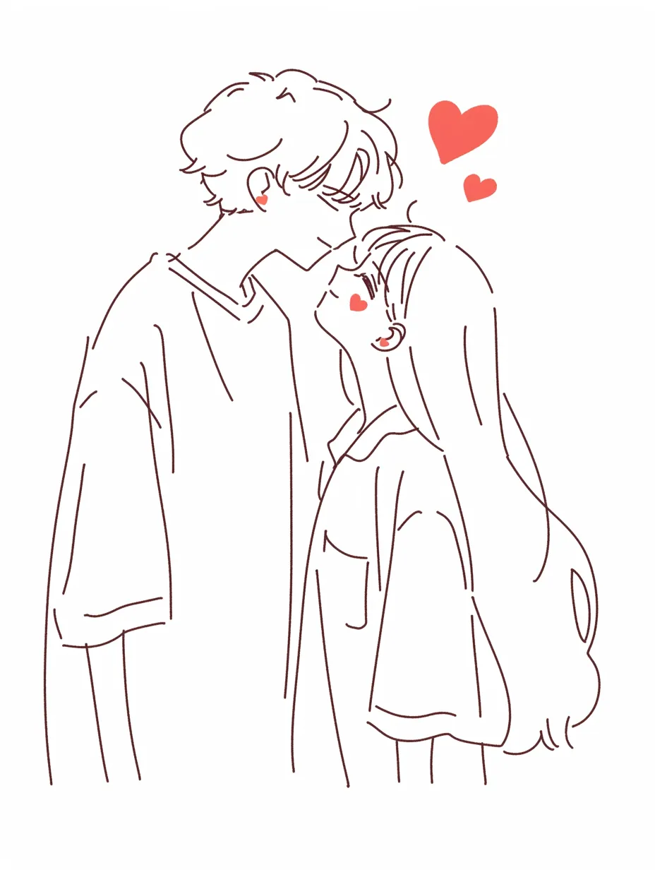 カップルのキスイラストの描き方とアイデア魅力的な愛表現のアート術。