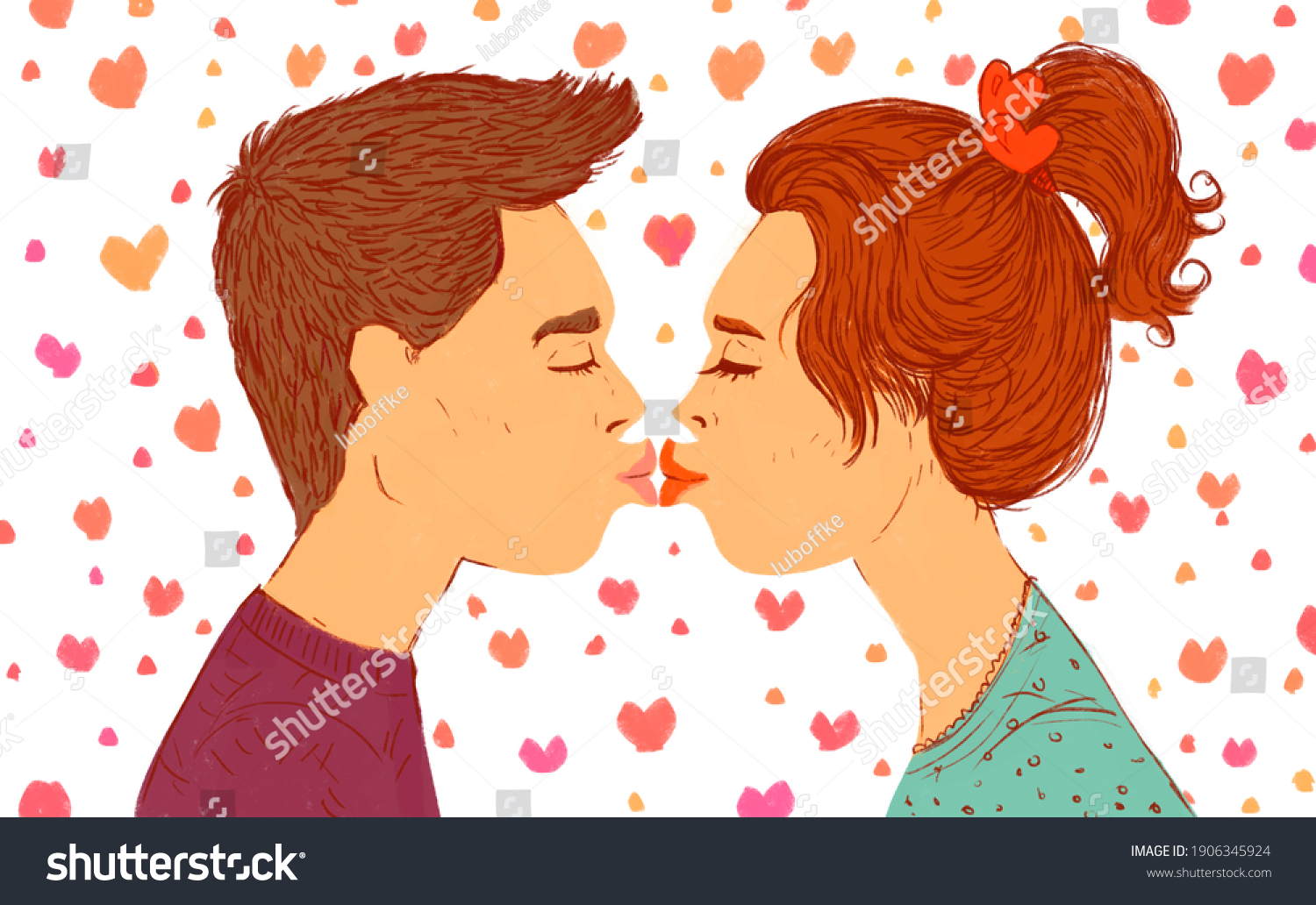 愛するカップルのキスイラスト画像とPSDフリー素材透過の無料ダウンロード - Pngtree。