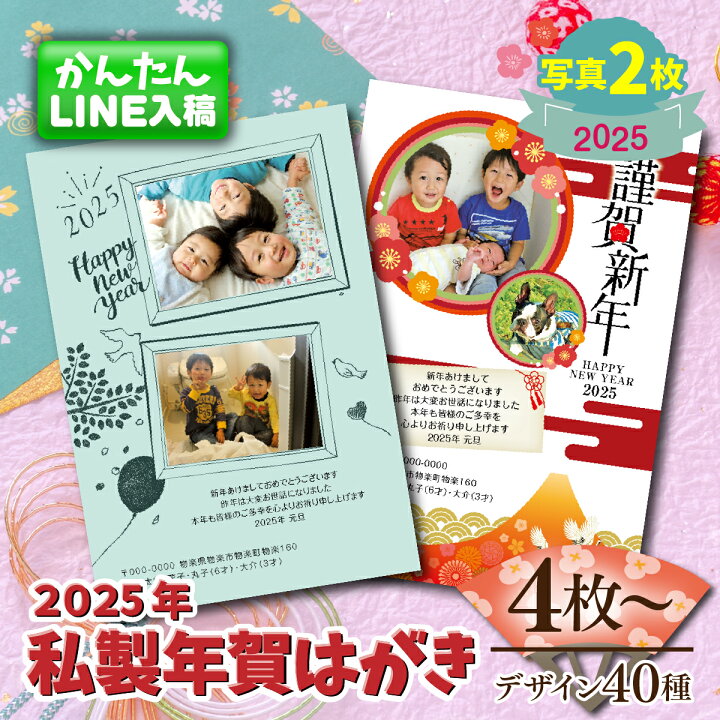 写真入り 年賀状印刷 2025年 巳年 年賀はがき 令和7年 子供 ペット。
