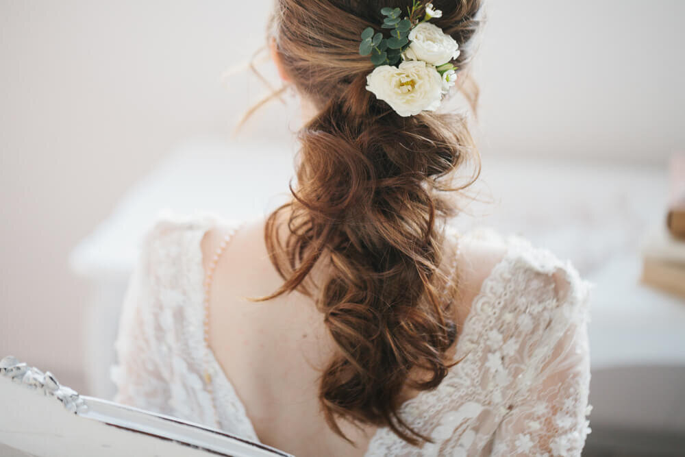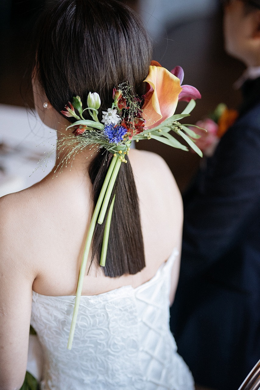 花嫁を華やかに彩る♪「生花」を使ったヘアアレンジ。