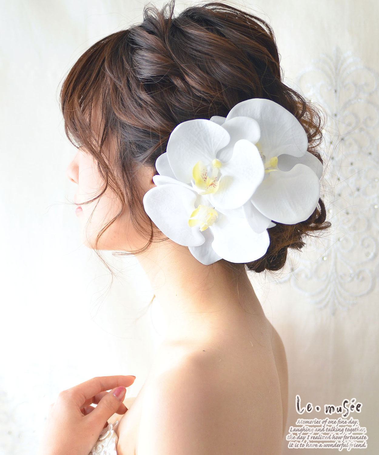 生花のようなカサブランカと胡蝶蘭の髪飾り 結婚式、卒業式、成人式、パーティシーン ヘッドドレス アクセサリーblue-candle 通販18821677Creema クリーマ。