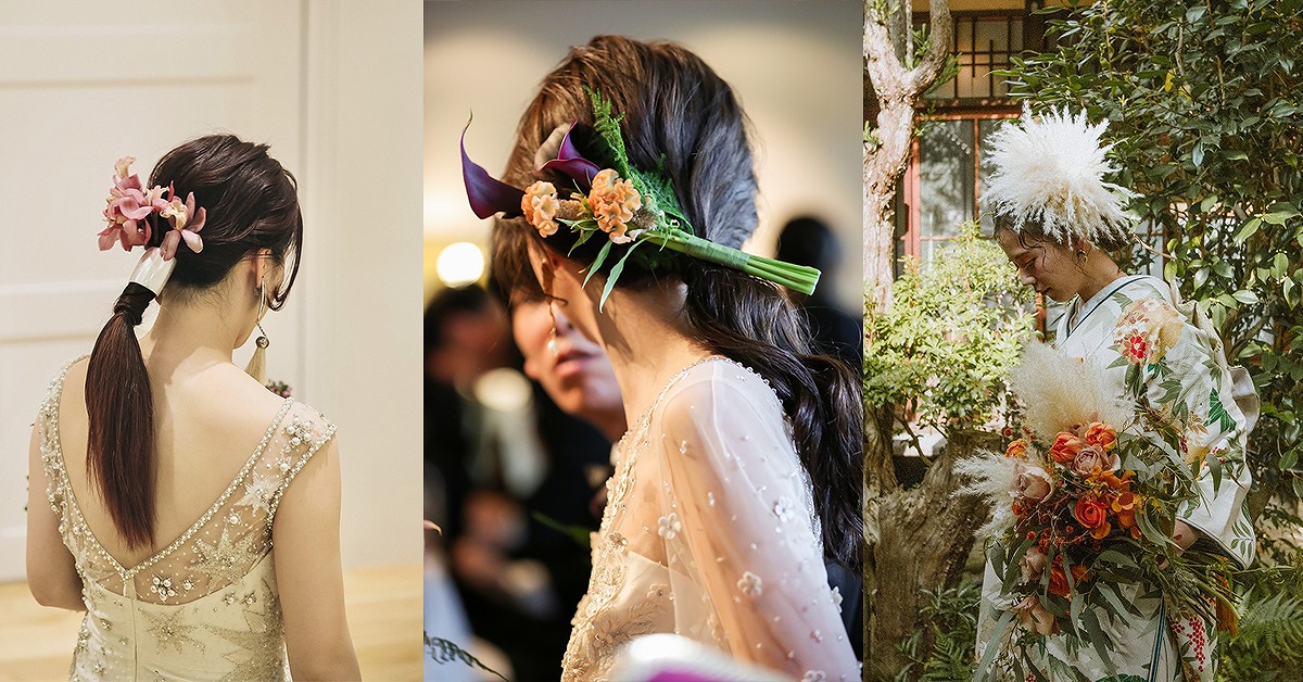 花嫁ヘアカタログ生花をアレンジした髪型11選 良いところ4つARCH DAYS。