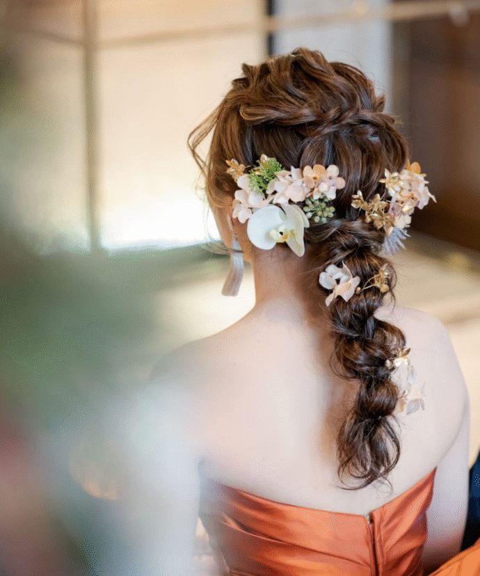 ウェディングドレスに合う生け花を使った髪型DRESSY 公式 ウェディングドレス・ファッション・エンタメニュース。