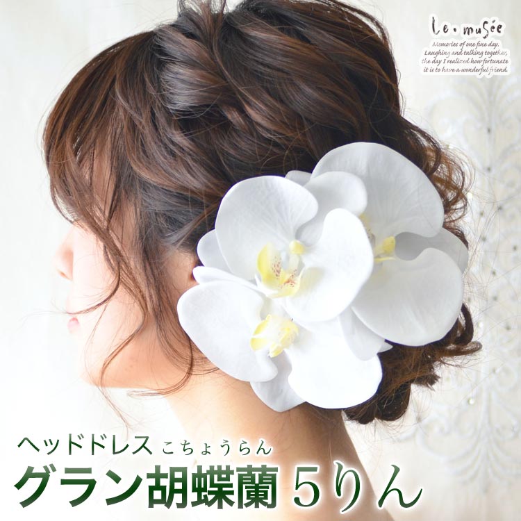 ヘッドドレス 花 ウェディング グラン 胡蝶蘭 5輪和装 髪飾り 造花 成人式 卒業式 結婚式 袴 振袖 ブライダル ヘアアクセ ヘアアクセサリー白無垢 色打掛 花嫁 白 大きい 振袖 袴 こちょうらん ショート コチョウラン リゾート 着物 ウエディングドレス 花飾り。