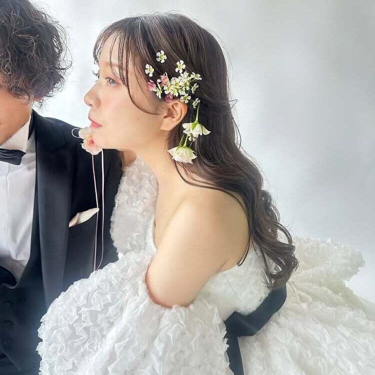 SNSで話題の「 生花ヘアアレンジ」が可愛い トレンドの最前線を行く!生花ヘアアレンジの実例8選をお見せします♡ - DRESSY 公式 ウェディング ドレス・ファッション・エンタメニュース。