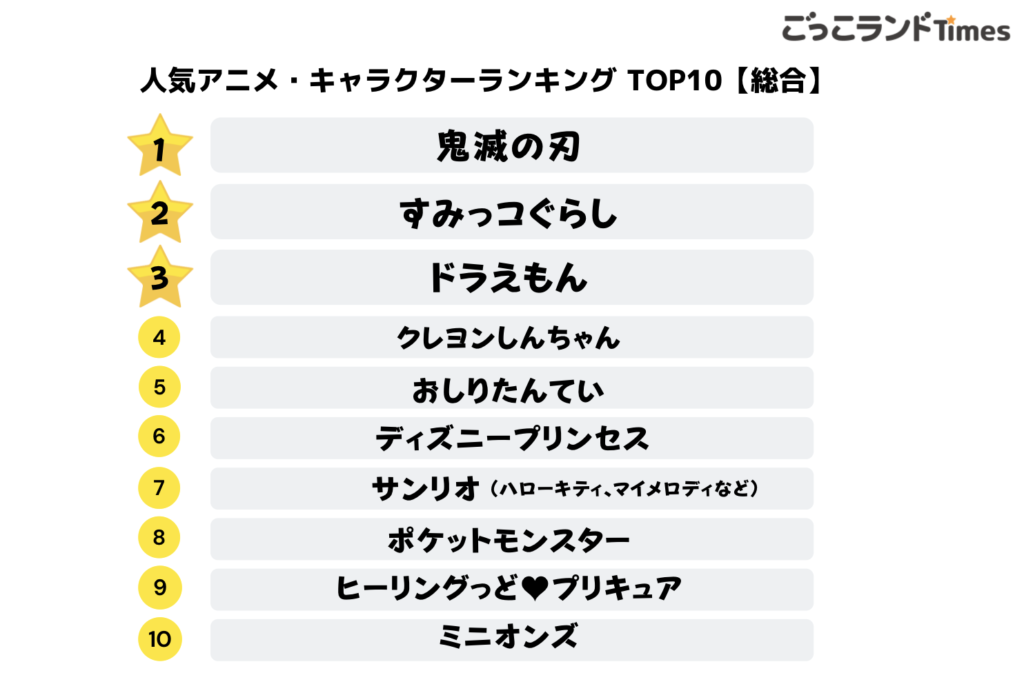 子どもに人気のアニメ・キャラクター」ランキング 第1位は「鬼滅の刃」!2021年最新調査結果1 2アニメ ねとらぼリサーチ。