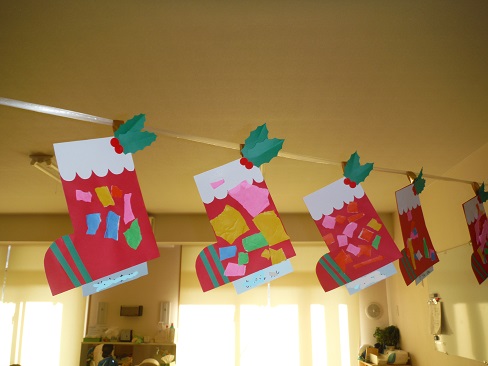 クリスマス制作 すみれ組 1歳児第二椎の実子供の家。
