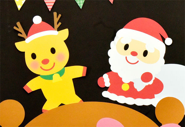サンタ&トナカイ壁面飾り 壁面飾り工房本店 壁面装飾・パネルシアター・ペープサート・型紙・知育・保育・介護商品の販売☆無料ダウンロード型紙「 サンタとトナカイ」 冬 幼稚園 保育園 老人ホーム 介護施設 デイサービス 壁面装飾 型紙 製作☆。
