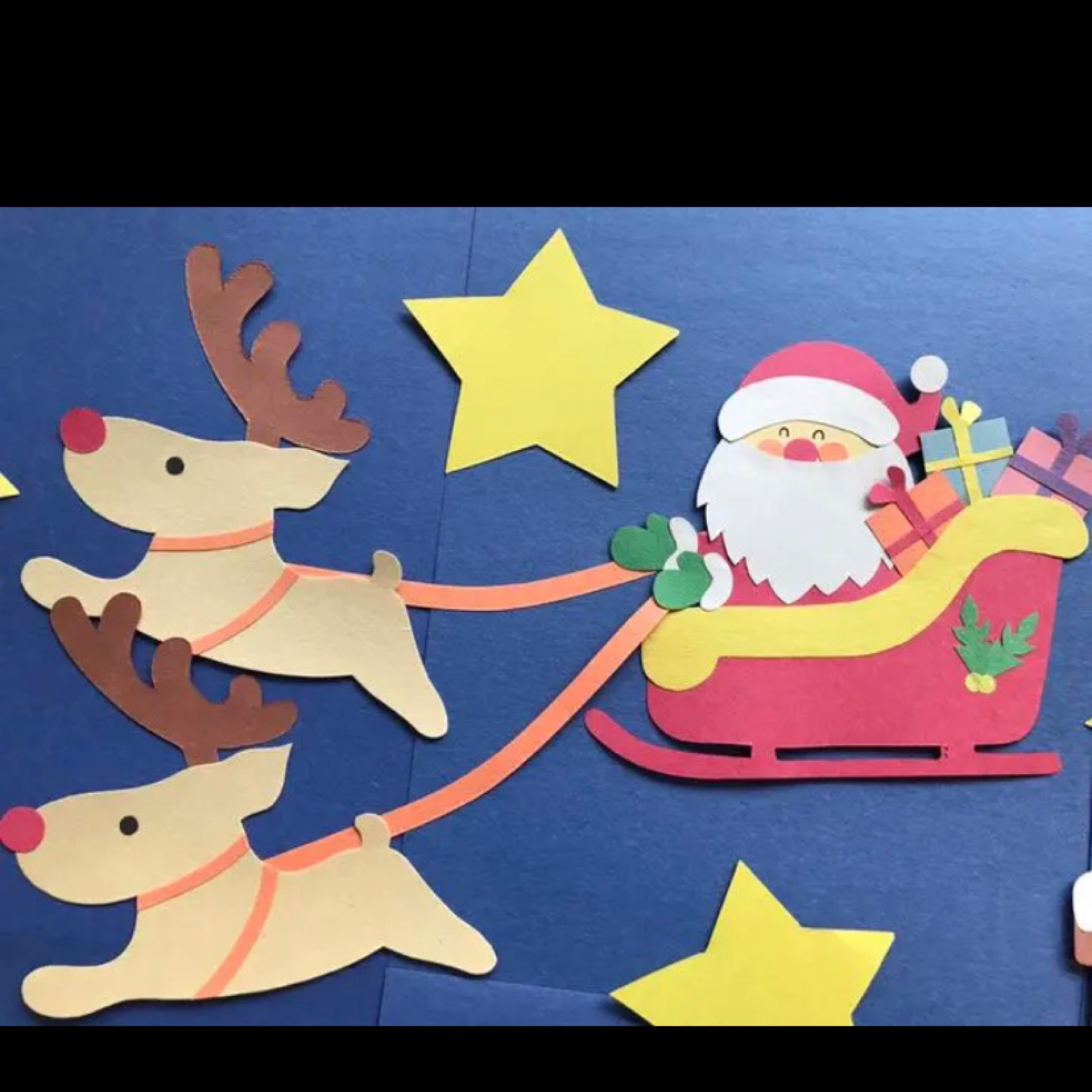 壁面飾り 「サンタとトナカイ2」の作り方! 冬 12月 クリスマス 無料型紙で簡単! 画用紙 工作 壁面装飾 ペーパークラフト paper craftクリスマスサンタトナカイ 製作キット 壁面飾り冬保育 高齢者 クラフト。