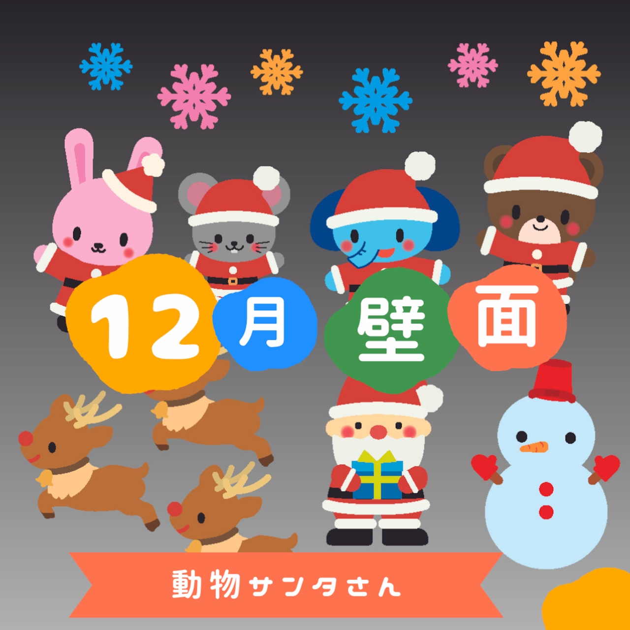 壁面飾り工房本店 壁面装飾・パネルシアター・ペープサート・型紙・知育・保育・介護商品の販売☆壁面飾り工房 横80cm 「動物たちのクリスマス!」冬11月 12月 サンタクロース 幼稚園 保育園 学校 病院 施設 知育 壁面装飾 型紙 製作☆。
