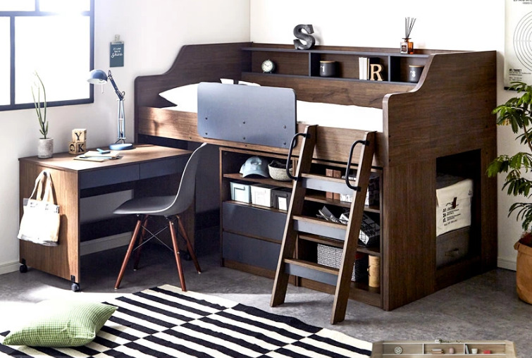 部屋が狭い中学生に!家具を効率よく配置できるロフトベッドのレイアウトベッド・マットレス通販専門店 ネルコンシェルジュ neruco。