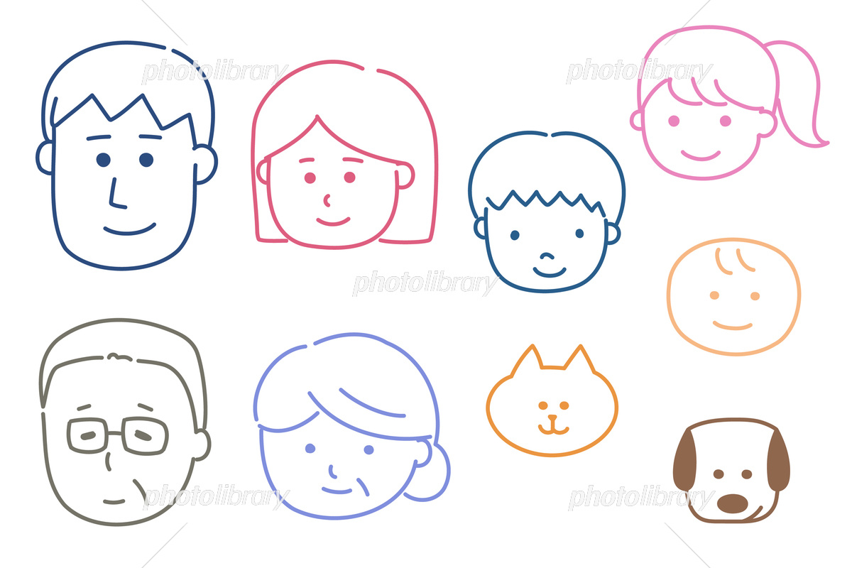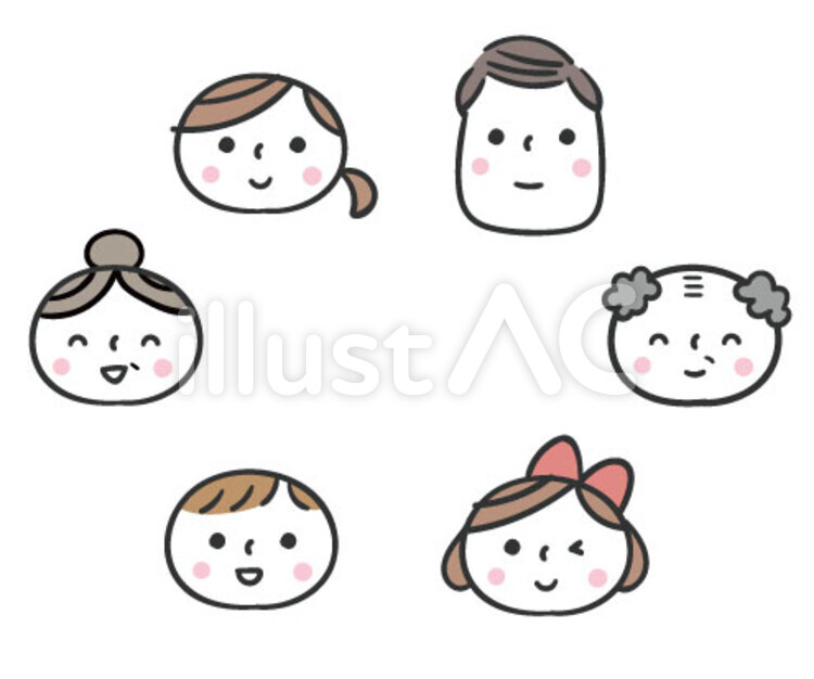 色々な 家族 顔 アイコン 5人家族:イラスト無料。