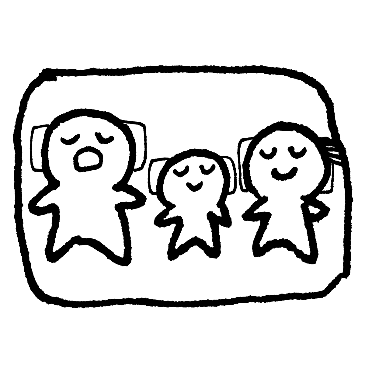 白黒線画のシンプルかわいい家族のイラスト:イラスト無料。