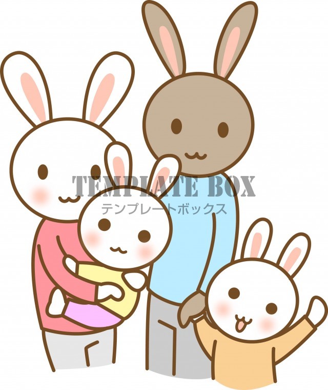 かわいいウサギのワンポイントイラスト、ファミリー、親子、パパ、ママ、子どもたちの4人家族のうさぎのイラスト無料イラスト素材TemplateBox。