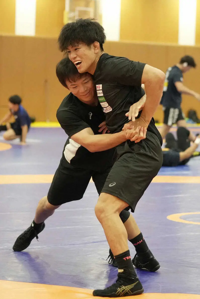 レスリング全日本合宿フリースタイル公開練習>公開練習で汗を流す清岡 右 と樋口 撮影・郡司 修- スポニチ Sponichi Annex スポーツ。