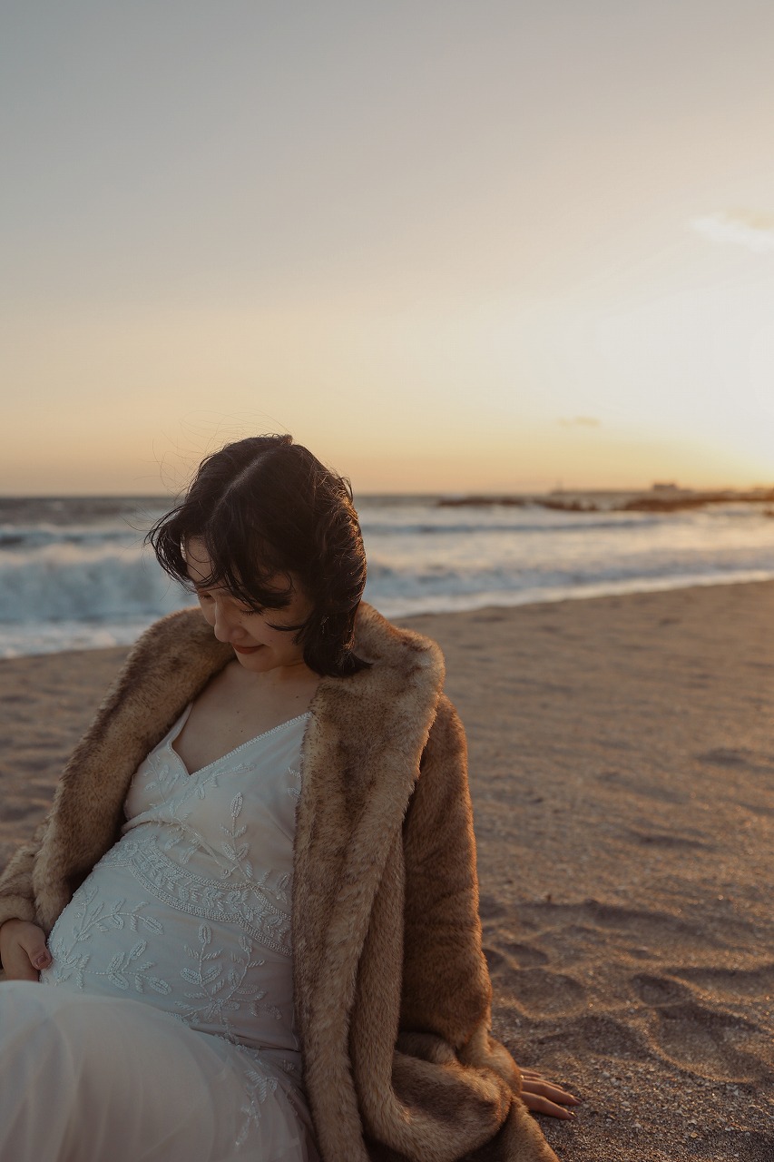 本当に嬉しい」海と夕日をバックにマタニティフォト撮影OurPhoto アワーフォト。