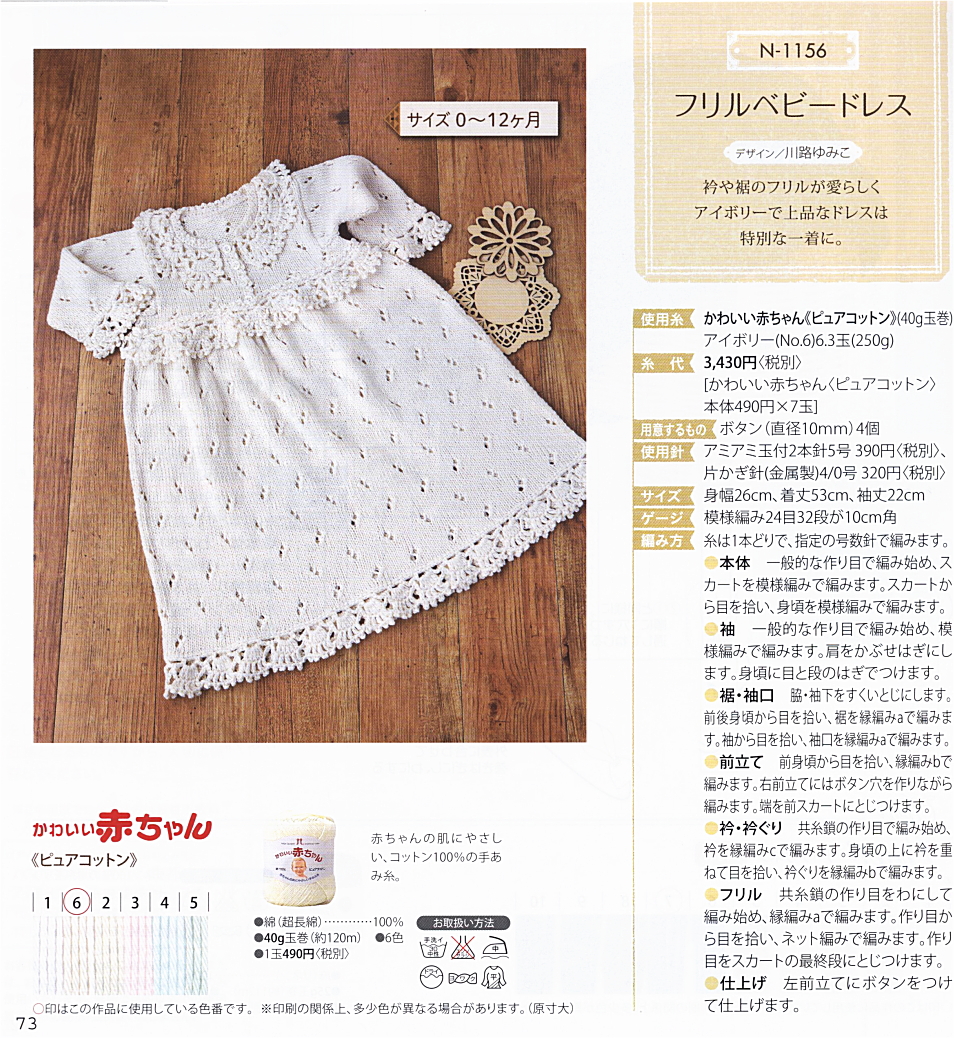 メーカー別 :: メーカー 手編み・手芸:: ハマナカ :: キット :: ベビー ドレス 手作り キット フリルベビードレス 編み図付き 手作りキット ベビー 編み物 キット ハマナカ - 手芸の山久 公式サイト。