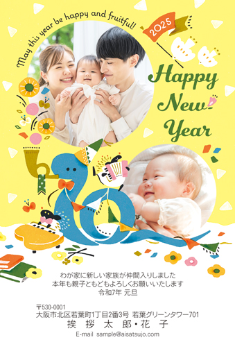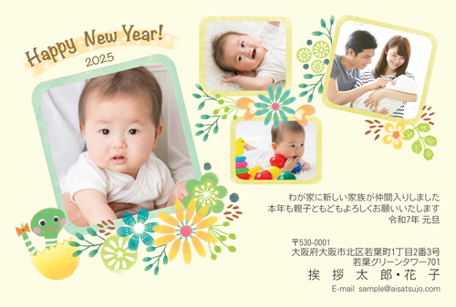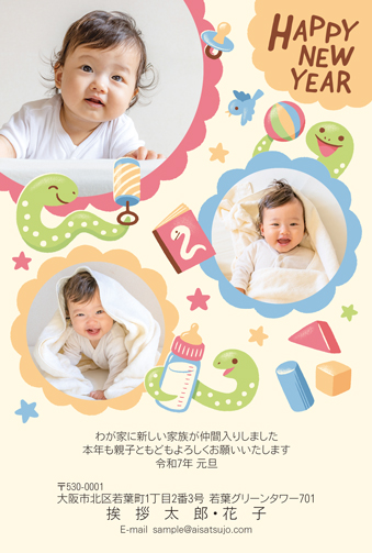 出産報告 写真入り年賀状デザイン一覧カメラのキタムラ年賀状2025巳年。