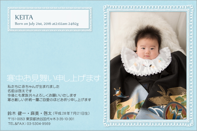 出産報告はがき 無料テンプレート フォトフレーム Andante 商用利用可和風 洋風 年賀状。