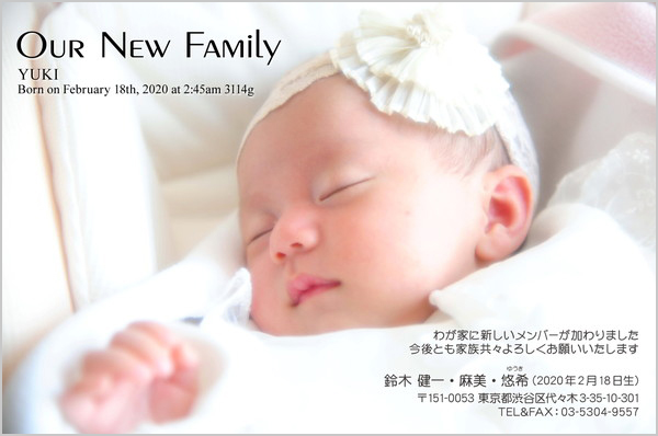 出産・ファミリーはがき No.226写真年賀状・出産報告はがきの『アンビエンテ』。