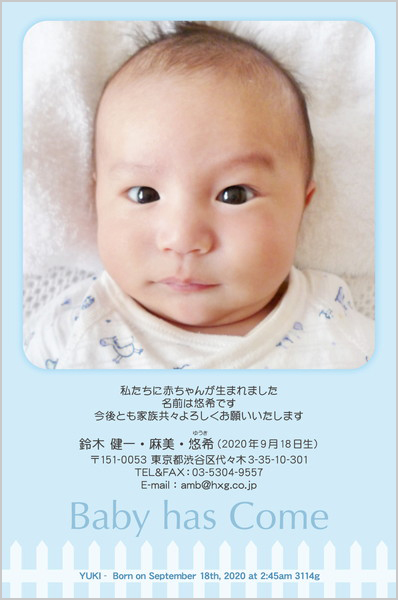 写真入り かわいい天使の出産報告年賀状bizocean ビズオーシャン。