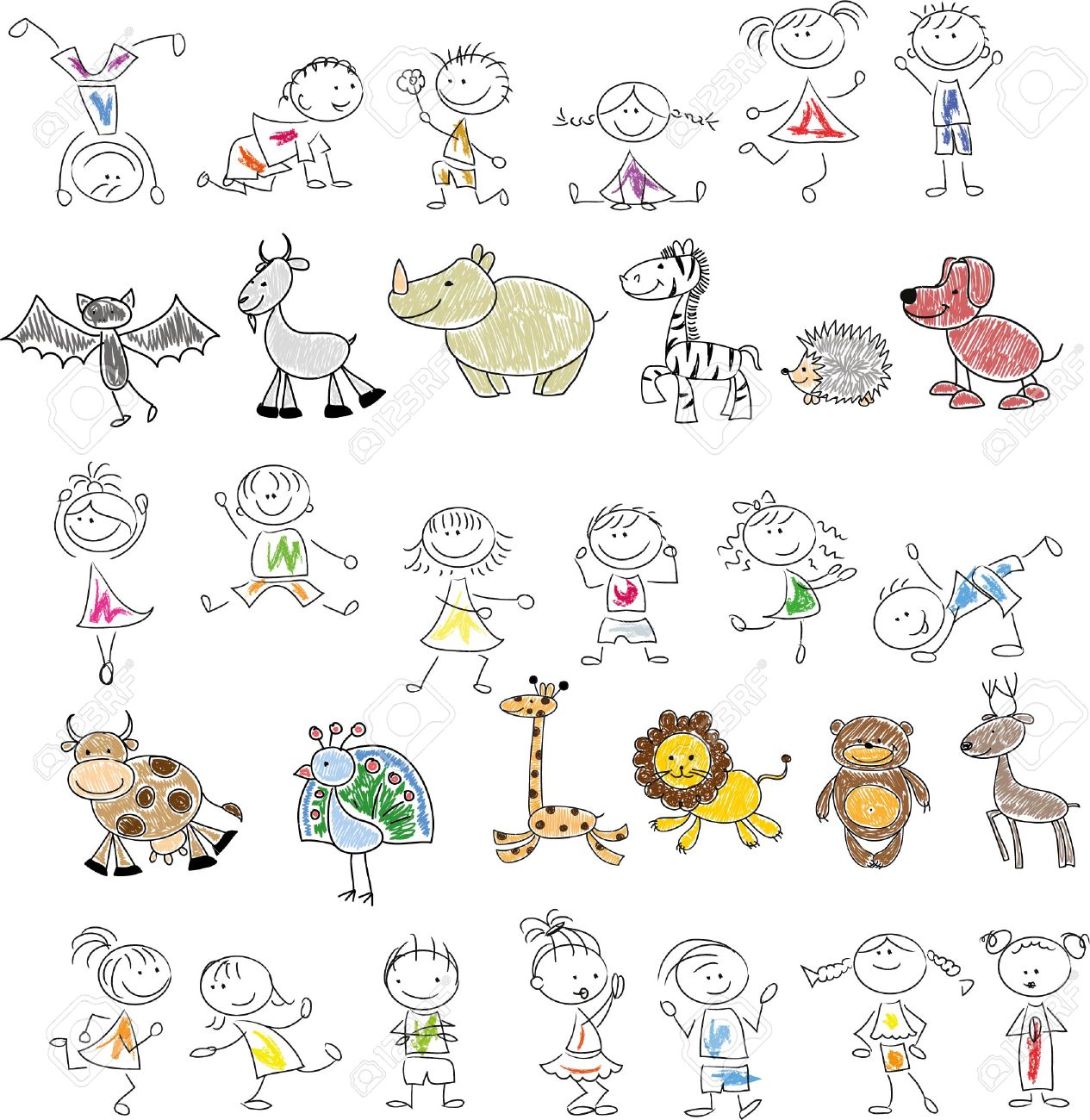 落書き動物の子どもたちの絵のイラスト素材・ベクター Image 35099501。