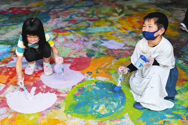 落書きをする子供たちの写真・画像素材-Snapmart スナップマート。