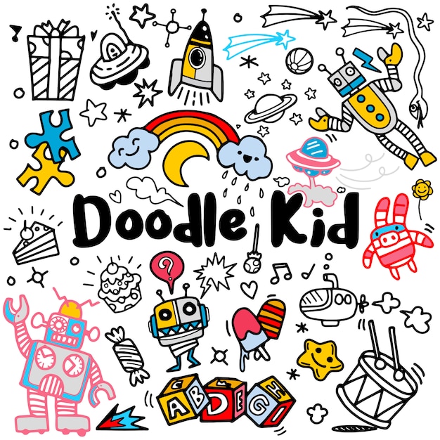 手描きの子供落書きセット、落書きスタイル、ベクトルイラストPremiumベクトル素材。