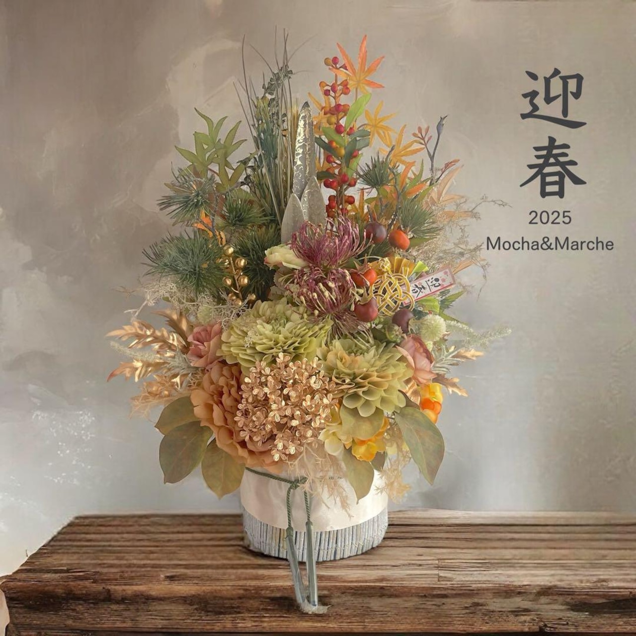 2025 門松 門松アレンジ しめ飾り 新年飾り 玄関 オシャレ 手作り しめ縄Mocha&Marche モカアンドマルシェ フラワーショップ。