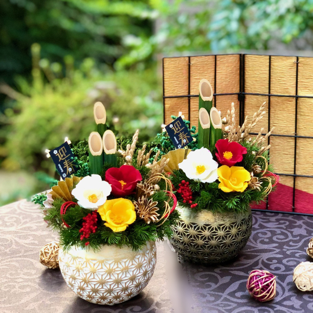 正月飾り 門松 ミニサイズで楽しむ お正月 門松飾り 一対 玄関 卓上 花 プリザーブドフラワー 迎春 新年 お祝い お歳暮 お年賀 アレンジおしゃれ 謹賀新年。