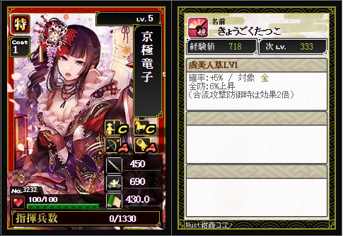 京極竜子 特 の考察と育成方針 - 戦国IXA攻略 ランカーへの近道。
