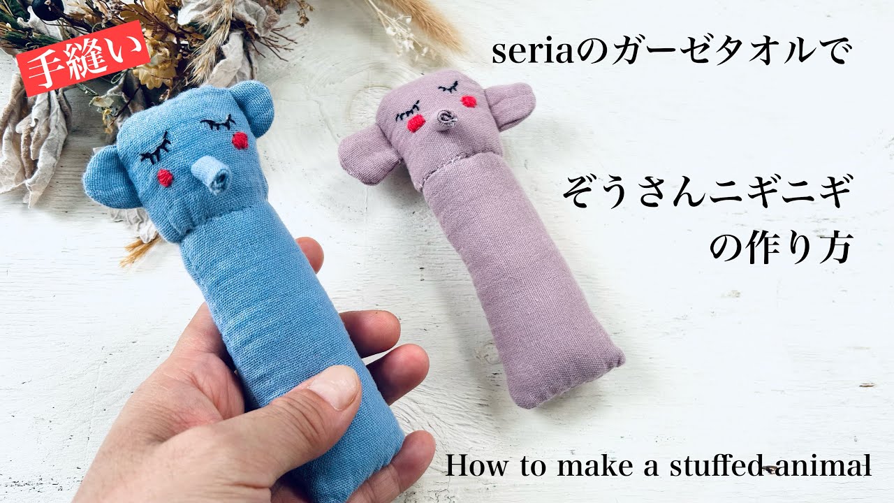 100均DIYガーゼで作るぞうさんニギニギの作り方プレゼントにも100均DIY手縫いレシピhandmade How to make。