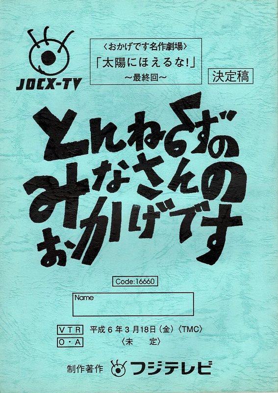 フジテレビ「とんねるずのみなさんのおかげです 太陽にほえるな!最終回」決定稿台本。