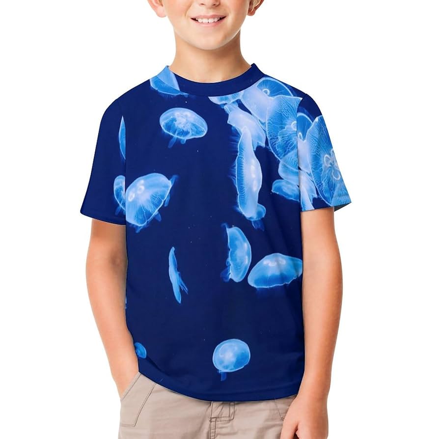 Amazon.co.jp: Tシャツ キッズ 半袖 丸首 海月柄 クラゲ柄 海の日 ネイビー 紺色 子供服 可愛い 男の子 女の子 夏 春ティーシャツ トップス プリント 通学 通園 お着替え 上着 120CM : ファッション。