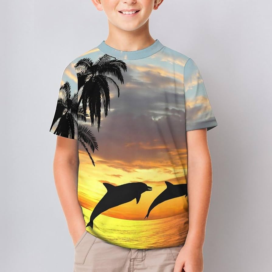Amazon.co.jp: Tシャツ 半袖 キッズ ハワイ 海 空 イルカ 子供服 男の子 女の子 トップス 通学 お着替え 夏服 100-160cm: ファッション。