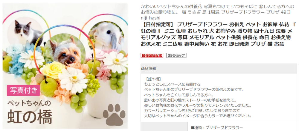 ペットが亡くなったときのお供え花ガイドフラワーファーム。