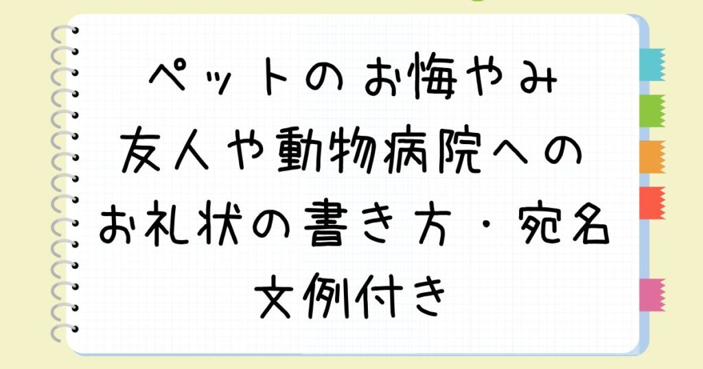 ペットのお悔やみのお礼状~友人や動物病院への書き方・例文、動物病院の宛名これからの。
