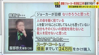 京王線刺傷、服部恭太被告「死刑になりたかった」 人の命を軽く見る「ジョーカーになりきろうと」 : 読売新聞。