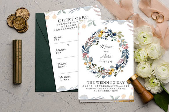 1枚あたり35円以下! ゲストカード 芳名帳 両面印刷 結婚式招待状に一緒に添えて 春の訪れリース花柄デザイン 送料無料 その他オーダーメイド注文前プロフ必読💍産休に入りました 通販 15632508Creema クリーマ。