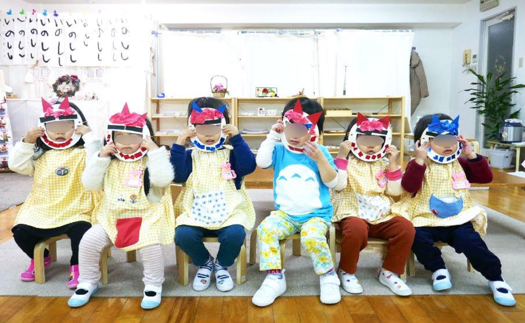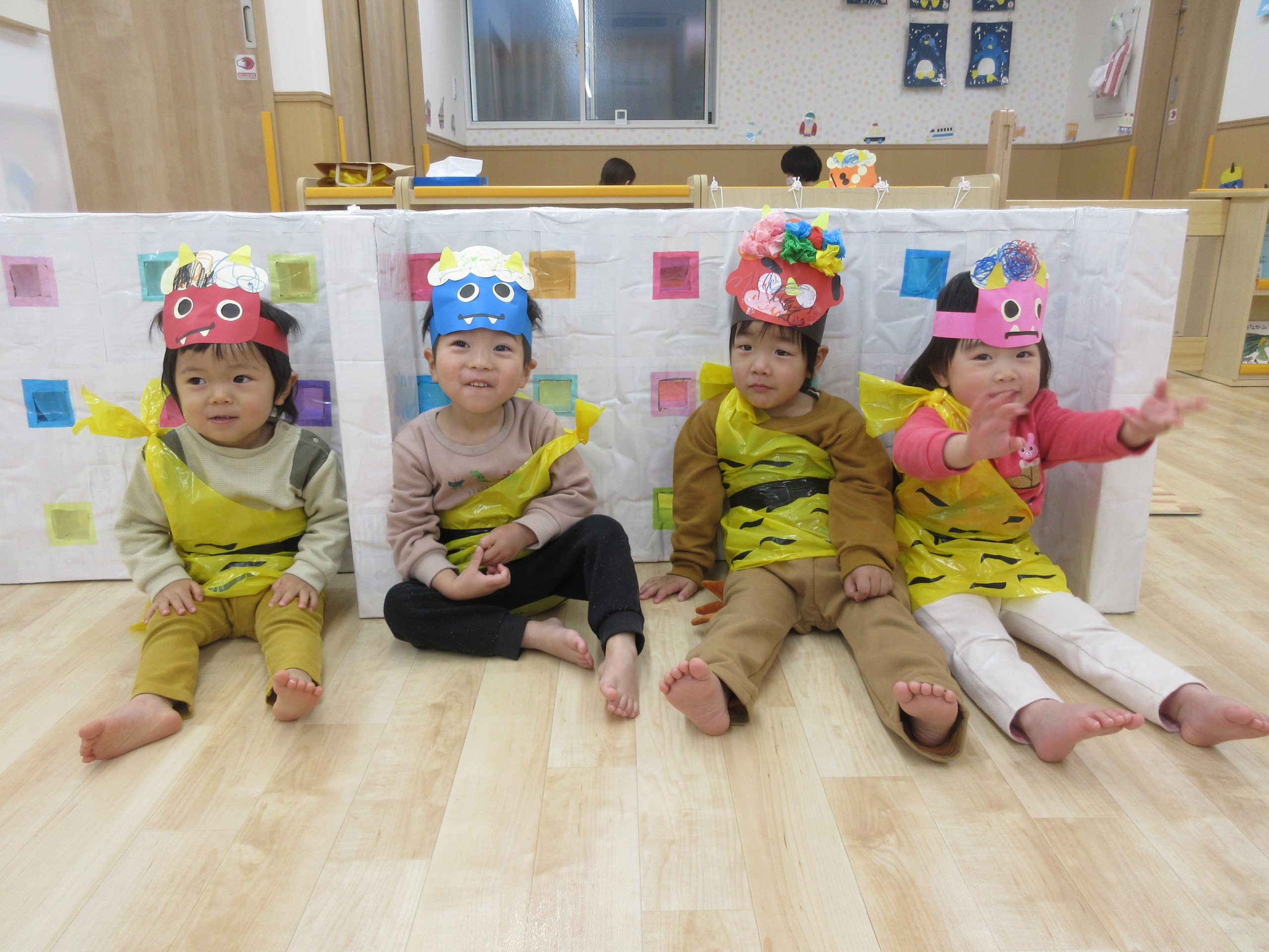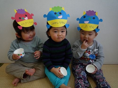 1歳児 ふたば組 ~節分「豆まきごっこ」 – 社会福祉法人 西花畑会 こひつじ保育園。