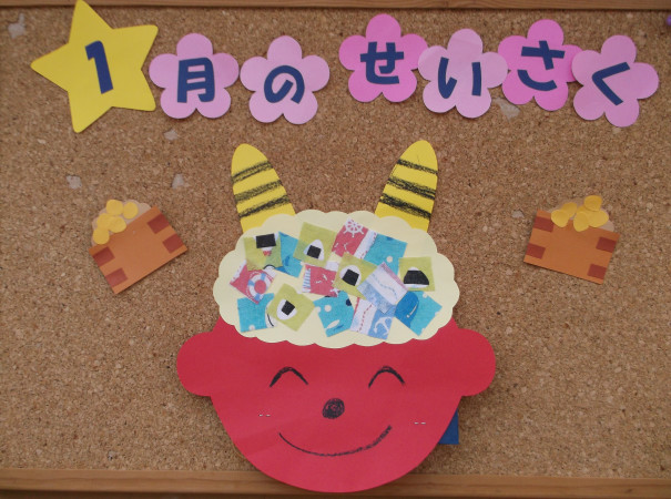 1月の製作は「鬼のお面」です。こらんの裏庭-子育て情報誌こらんのブログ。