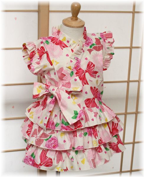 お姫様のようなかわいい浴衣を手作り!浴衣ドレス 型紙 作り方 80-130。