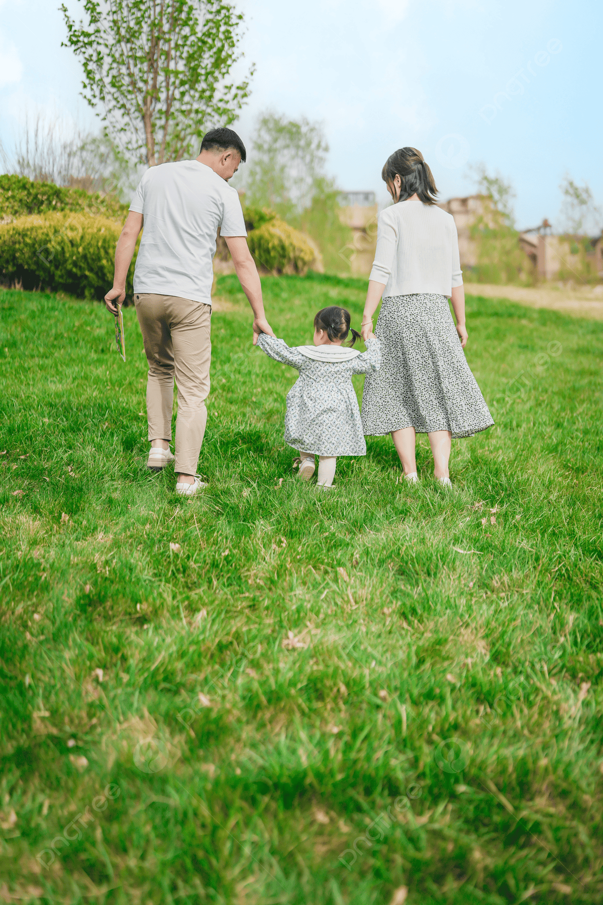 手をつないで公園を一緒に歩く3人家族の後ろ姿 写真背景 無料ダウンロードのための画像 - Pngtree。