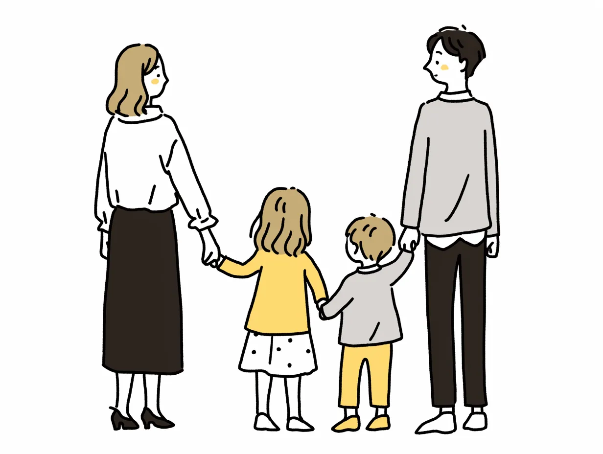 親子で手をつなぐ、あたたかな家族の時間イラスト・フリー素材なら「シンテリ」。