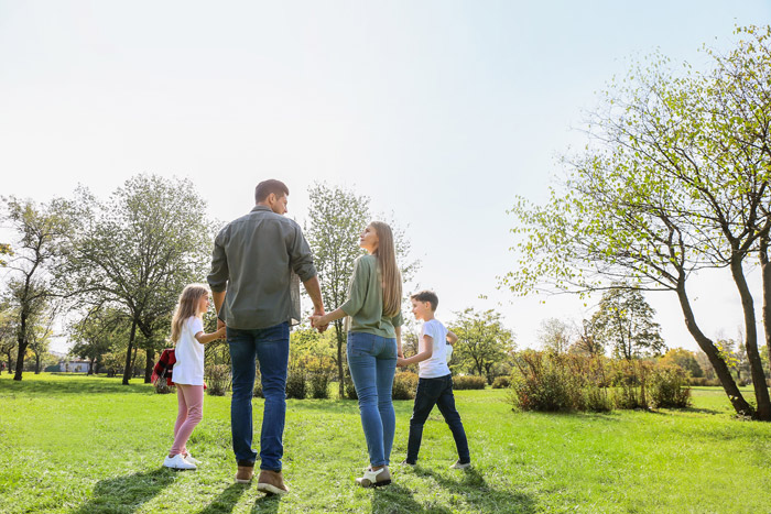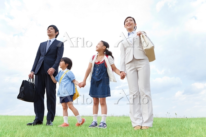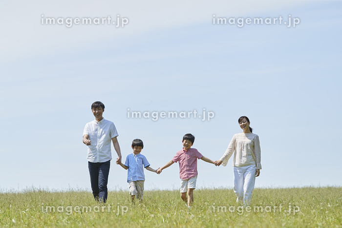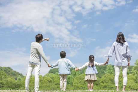 公園で手を繋ぐ4人家族後姿 10248001756 の写真・イラスト素材アマナイメージズ。