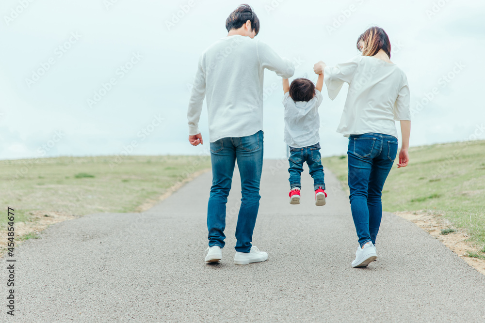 手を繋いで歩く家族 後ろ姿の Stock フォトAdobe Stock。
